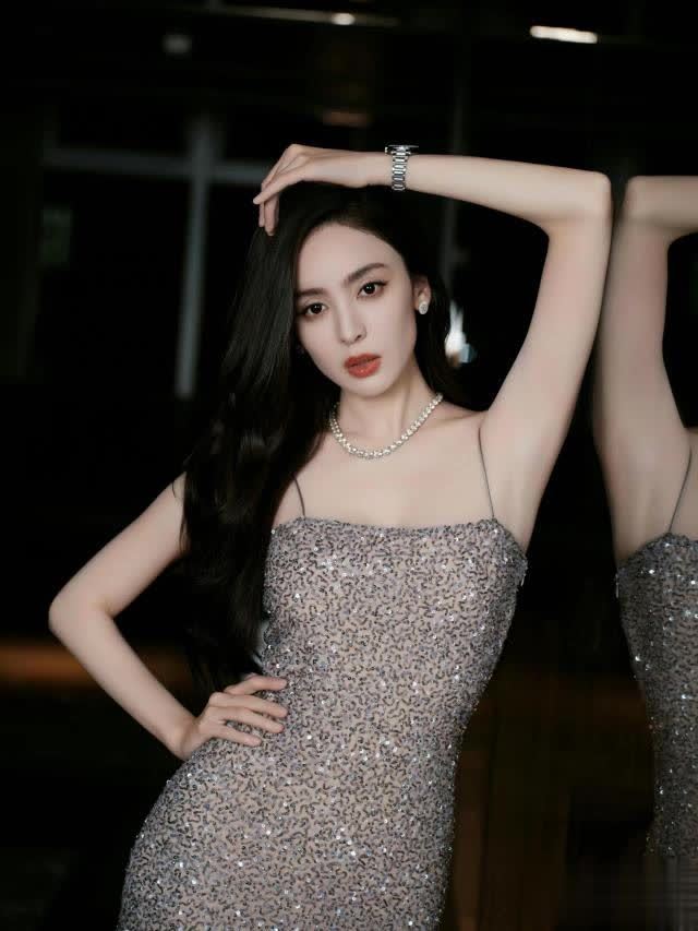 亮片裙在光影下若隐若现地闪烁,与深色背景形成鲜明对比,将她的身材曲线勾勒得更加曼妙。此时的她,仿佛从繁华喧嚣中暂时抽离,沉浸在自己的世界里,流露出一种不为人知的柔软。这种温柔婉约的气质,与她平日里在舞台上的闪耀形成反差,却又格外动人,仿佛是从电影中截取的经典片段,充满了故事感,让人忍不住想要探寻背后的情节。
