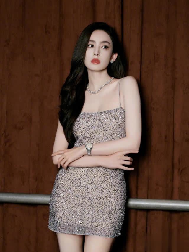 娜扎身着一袭吊带亮片裙,单手轻放在头上,姿态优雅而自信。裙子上密密麻麻的亮片如繁星般闪烁,在暗光背景下折射出细碎光芒,与她腕间的精致手表、颈间的璀璨项链相互呼应,更添几分贵气。她的长发如瀑自然垂落,眼神从容而坚定,微微上扬的唇角带着一丝若有若无的笑意,将 “时尚是一种态度” 诠释得淋漓尽致。这一身装扮,不仅凸显了她的优雅气质,更展现出她对时尚的强大驾驭能力,仿佛在宣告:自信,就是最美的时尚配饰。